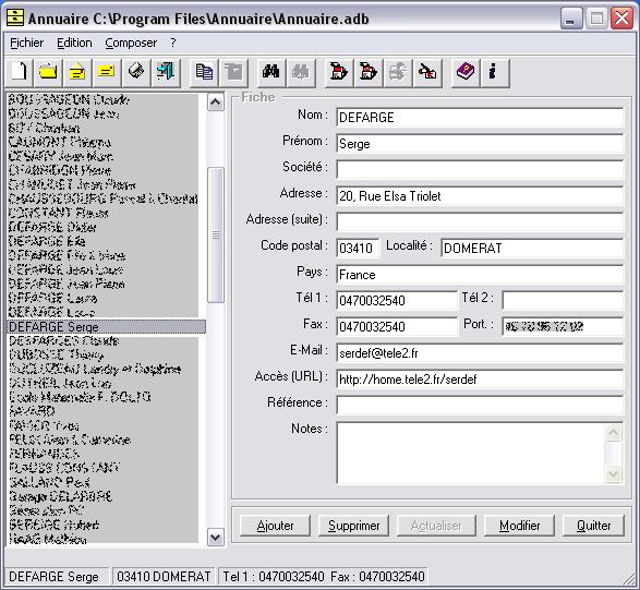 Annuaire est un gestionnaire d'adresses personnel au format ACCES qui permet