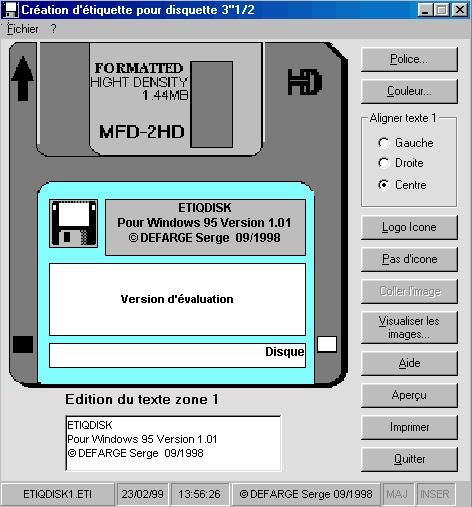 de disquettes 3"1/2 (Win95/98/NT/XP) |