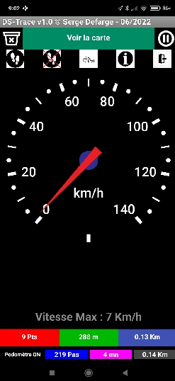 Le compteur de vitesse permet de savoir à quelle vitesse vous vous déplacez soit à pied, en vélo, scooter, moto, voiture.