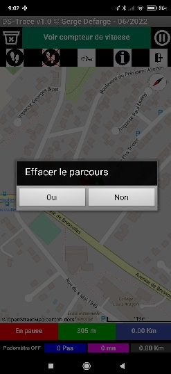 Le bouton RàZ permet l'effacement du parcours.