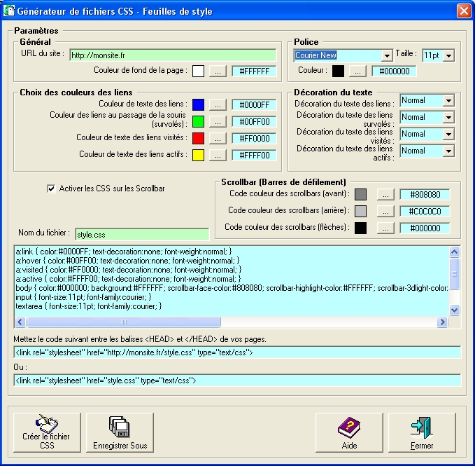 L'assistant javascript de DS-EditeurHTML 3.8.4 permet de créer automatiquement des feuilles de style CSS.
