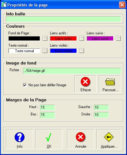 On modifiera manuellement le fichier de style en supprimant la propriété "background" et en donnant une couleur blache pour le texte. Le fichier de style sera renomé en style2.css. L'édition d'un fichier de style se fait avec le menu :Fichier : Ouvrir en mode texte uniquement (Code source)