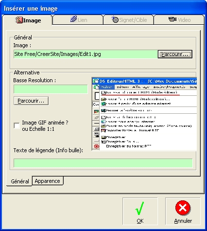 Dans la fenêtre suivante choisir l'image à insérer puis entrer ses propriétés.