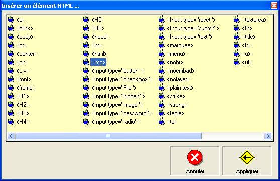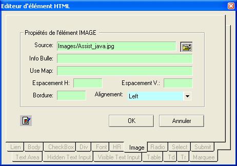 Menu Edition --> Insérer un élément HTML --> Double Clic sur IMG