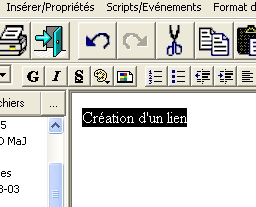 - 2 - En mode texte : La procédure est la même que l'insertion d'une image. Il faut sélectionner l'élémént < a>.