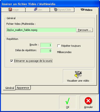 - 1 - Menu Insérer/propriétés --> Vidéo/Multimédia