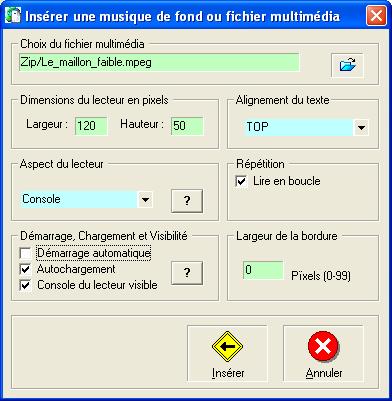 - 2 - Menu Insérer/propriétés --> Musique de fond/Fichier Multimédia
