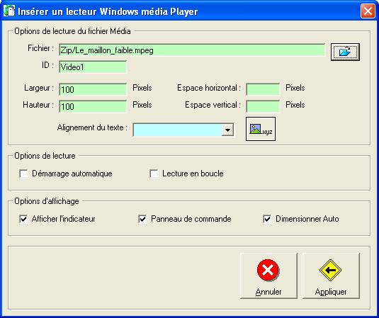 - 3 - Insérer / Propriétés --> Média Objets ActiveX --> Lecteur Windows Média Player
