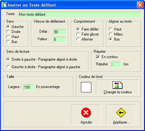 Dans l'exemple suivant, le comportement sera <Faire glisser> avec un texte aligné au milieu.