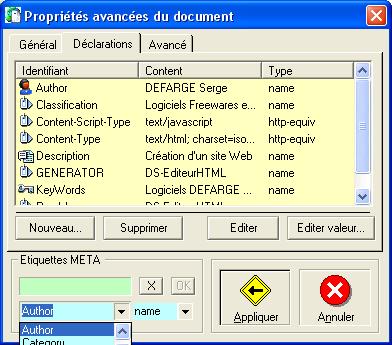 | Insérer ou modifier les étiquettes META avec DS-EditeurHTML |