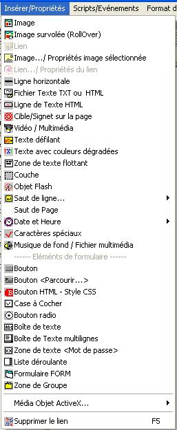 Pour insérer des éléments HTML, voir menu --> Insertion d'objets - Pour plus d'information sur la structure d'un site Web voir --> la création de pages