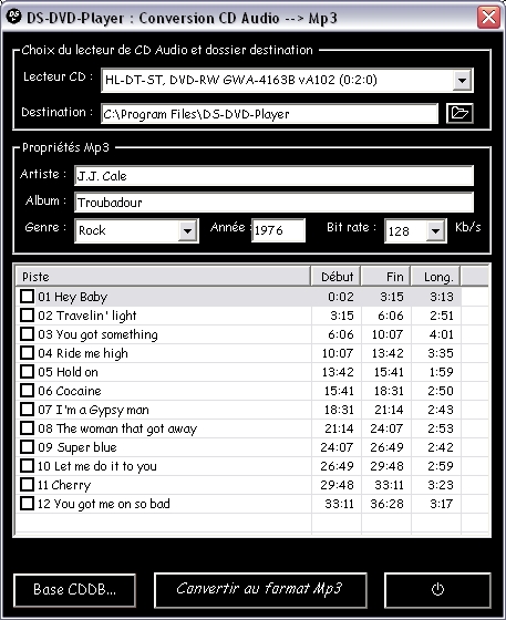 DS-DVD-Player : Ripper un Cd Audio - Conversion CD Audio --> Format Audio Mp3 |