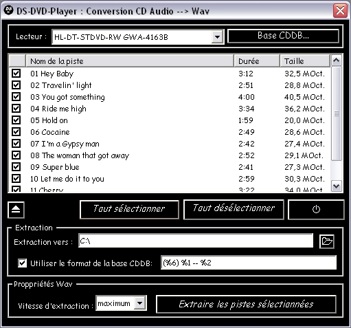 DS-DVD-Player : Ripper un Cd Audio - Conversion CD Audio --> Format Audio Wav |