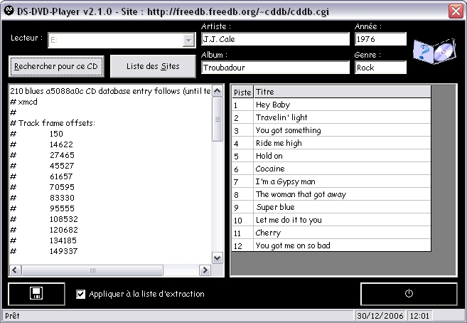 DS-DVD-Player possède un utilitaire qui permet de retrouver les titres des CD