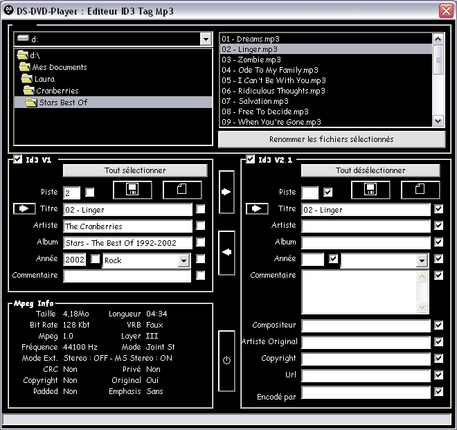 DS-DVD-Player : Editeur ID3 Tag Mp3 |