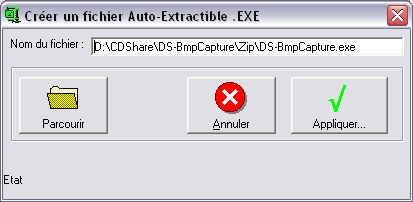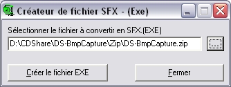 Créer un fichier auto-extractible .EXE : Crée un fichier .EXE à partir de l'archive. Ce fichier auto-extractible se décompressera dans un sous dossier portant le même nom que l'archive .EXE. Le contenu de l'archive sera décompressé et le fichier .ZIP original ne pas supprimé de l'archive. Pour les formats CAB et RAR seule l'archive sera décompressée.