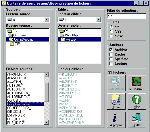 décompresse les fichiers de type NOMFICHIER.EXE -->