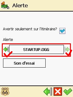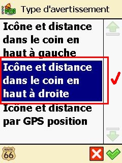 4 - Cliquez sur "Changer" et sélectionnez le type d'avertissement (icone et distance ...) :