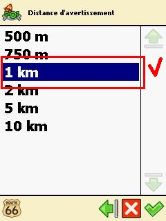 5 - Sélectionner la distance de déclenchement de l'alerte dans la liste donnée
