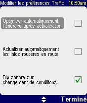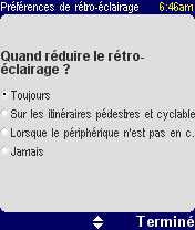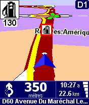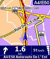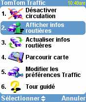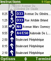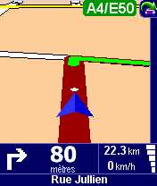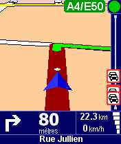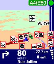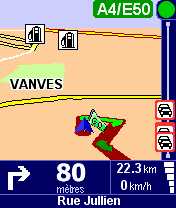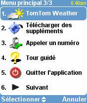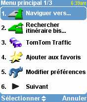 Le logiciel permet comme l'actuel TomTom Mobile de créer un itinéraire et d'être guidé vocalement, mais est cette fois-ci compatible avec une utilisation aussi bien dans une voitures que sur un vélo ou encore directement à pieds. De plus, les nouveautés du logiciel sont nombreuses avec notamment un support des codes postaux (uniquement en Angleterre et aux Pays-Bas pour le moment) ou une intégration complète du menu de TomTom Mobile 5 dans le Smartphone (possibilité de cliquer sur un contact pour se diriger vers le lieu rentré de son habitation). TomTom Mobile 5 permet également de prendre en compte dans son calcul d'itinéraire le trafic en cours mais également le temps qu'il fait (gestion de la pluie par exemple) via un abonnement au service TomTom Plus qui permet d'utiliser les programmes TomTom Traffic et TomTom Weather. Plusieurs itinéraires complets seront disponibles et l'utilisateur choisira celui qui lui conviendra le mieux tandis qu'il est également possible d'ajouter dans la navigation d'un point A vers un point B, des points intermédiaires à la manière de la version Pocket PC du logiciel. Un nouveau système de téléchargement permettra de récupérer les dernières cartes à jour. Classiquement TomTom Mobile 5 gère toujours un affichage de la route en mode 3D, le mode de navigation de jour et de nuit et enfin des POI (Point d'intérêts) personnalisés. Le logiciel de navigation GPS TomTom Mobile 5 est disponible pour les Smartphone suivants : Motorola MPx 220, Nokia 6260, 6600, 6670, 7610, 7710, Orange SPV-C500, SPV-E200, Qtek 8060 et enfin 8080. Cette mise à jour s'effectue sur une carte mémoire qui sera envoyée par la poste, le format de la carte mémoire pouvant être choisi entre RS-MMC, MMC ou mini-SD (pour les SPV C500). Pour le moment, seule une mise à jour de la version standard du logiciel vers la version 5 de TomTom Mobile peut être achetée sur le site de TomTom. Cette mise à jour est proposée au prix de 79? (plus frais de port) et inclura aussi bien une mise à jour logicielle qu'une mise à jour des cartes associées. De plus, les points d'intérêts du logiciel (POI) comme les restaurants, hotels ou parkings seront également pour leur part mis à jour. A noter que l'ancienne carte mémoire précédemment fournie avec la version classique du logiciel peut être conservée. ![]() Comme le veut l'usage dans le domaine, l'installation du programme et la configuration automatique de celui-ci avec le récepteur GPS fourni en standard, à savoir la nouvelle version du récepteur GPS Bluetooth SiRF star III de TomTom se fait entièrement automatiquement. Il suffit d'allumer le récepteur GPS Bluetooth, de lancer le logiciel sur le Smartphone Symbian ou Microsoft pour que quelques secondes plus tard, le programme soit utilisable. ![]() ![]() ![]() ![]() ![]() ![]() A noter que la carte mémoire fournie avec le logiciel contient l'intégralité de la carte de France et le logiciel pré configuré pour fonctionner sans être installé sur le téléphone. La carte mémoire fournie est d'une capacité de 512Mo dont 300Mo utilisés (taille de la carte de France : 255Mo). Une fois le logiciel configuré pour fonctionner avec le récepteur GPS et le code d'ativation inséré, il faudra, comme dans la précédente version du programme, choisir la langue utilisée pour les interfaces et la navigation vocale. Deux types de voix sont toujours disponibles en standard, à savoir une voix masculine et une voix féminine. ![]() ![]() ![]() ![]() ![]() ![]() L'interface de navigation des menus est toujours classique et ne rompt pas avec celle présente dans la précédente version du logiciel. Néanmoins, plus de menus sont présents, le tout avec plus de possibilités de configuration. A noter cependant que les menus "TomTom Traffic", "TomTom Weather" et "Télécharger des suppléments" sont des services annexes nécessitants une connexion GPRS pour fonctionner. ![]() ![]() ![]() Nous détaillerons plus bas la fonction de navigation GPS, les préférences du système ainsi que le service "TomTom Plus". Intérêssons-nous ici aux options de "Favoris" ainsi que la nouvelle fonction "Appeler un numéro", les autres menus du programme allant être détaillés dans la fonction de navigation GPS de celui-ci. Le menu de favoris permet comme son nom l'indique de sauvegarder rapidement un lieu précis dans le but de pouvoir y retourner ultérieurement. ![]() Une nouveauté de TomTom Mobile 5 concerne cette fois-ci sa fonction "d'appel" intégrée dans les points d'intérêts (POI) du logiciel. Il devient en effet possible par exemple non plus seulement d'aller vers un restaurant le plus proche d'un point précis mais il devient possible de l'appeler directement, pour réserver une table. La fonction d'appel est directement intégrée avec celle des Smartphone Microsoft ou Symbian. ![]() ![]() ![]() ![]() Le service TomTom Plus est disponible gratuitement pendant une période de 1 mois et permet d'influer sur les itinéraires en fonction de trafic en cours, permet de consulter la météo d'une ville et permet encore de télécharger OTA (Over The Air) des cartes, de nouvelles voix, des nouvelles couleurs de cartes ou encore des points d'intérêts. Pour s'incrire, il suffira d'avoir un compte créé sur le site de tomtom et d'entrer sur le logiciel son adresse email. L'activation de 1 mois du service sera ensuite effective immédiatement. ![]() ![]() ![]() ![]() ![]() Sans doute un des points les plus forts du programme, à savoir la possibilité d'avoir une fonction de TMC Over GPRS qui permet de connaitre en temps réel (ou presque) l'état du traffic - embouteillages, accidents, travaux - dans le but d'éviter ces zones endommagées en les contournants directement via le logiciel qui créera automatiquement un itinéraire approprié. Une fois le service Traffic activé, une barre latérale à droite de l'écran s'affiche et indique les différents problèmes sur 