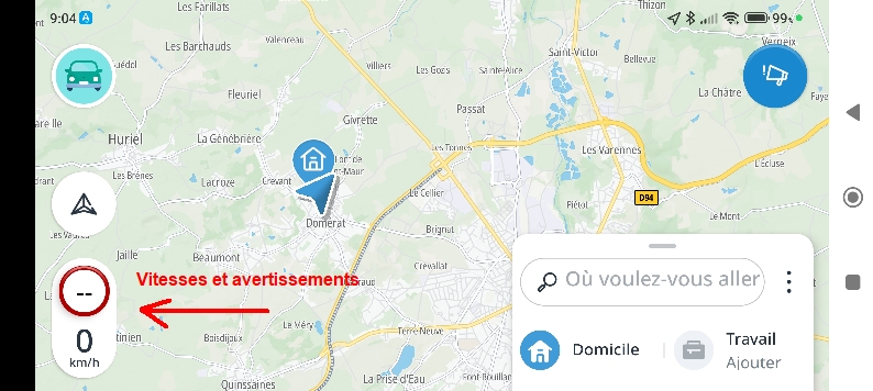 Nota : Les vitesses limites de Magic Earth sont souvent erronées ou absentes dans les agglomérations. Tomtom Amigo en arrière pla règle ce problème.