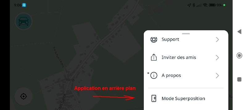 Hélas, le mode superposition n'est pas compatible Android Auto.