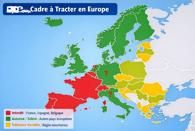Carte des pays Européens ou le cadre à tracter est autorisé