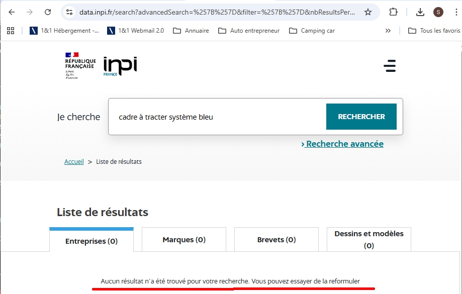 n'existe aucun brevet sur les cadres à tracter enregistré sur le site de l'INPI