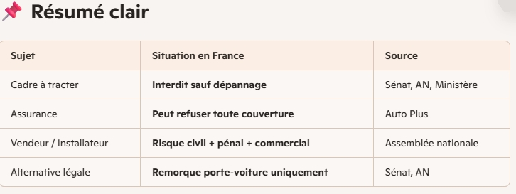 Cela signifie que tout conducteur, français ou non, est en infraction dès qu'il utilise un cadre à tracter hors dépannage.