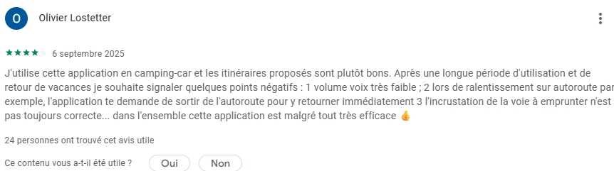 Quelques avis donnés par des camping-caristes : (Bons ou moins bons, mais il faut tester la nouvelle version de novembre 2025)