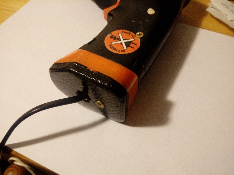 J'ai ensuite réalisé sur imprimande 3D un bouchon aux diménsions du fond de batterie, le tout fixé par