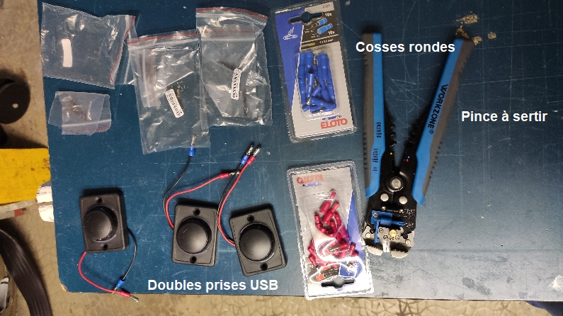 Le passage des câbles d'alimentation des prises USB pour la chambre s'est fait par la soute au dessus du lit central, les fils ont été tout simplement collés à la colle à chaud au pistolet à colle. Aucun fil n'est visible dans la cellule.
