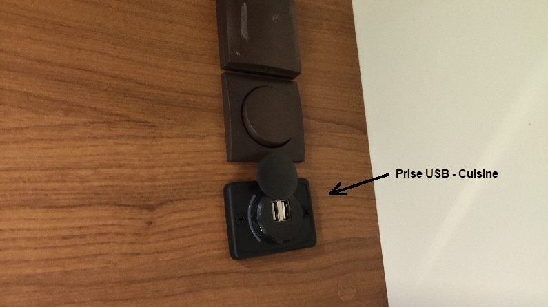 J'ai donc installé 2 prises doubles USB dans la chambre, une prise double en cuisine au dessus de la hote aspirante, et remplacé la prise simple USB du salon par une double prise USB.