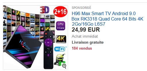 La différence de prix pour la Box H96 Max est la taille des mémoires ROM et RAM. Le premier prix avec 2Go ROM et 16 Go RAM suffit amplement pour installer les applications TV de base, Molotov TV, TNT Flash, Youtube, Netflix, VLC, Spotify, Deezer, Amazon TV prime vidéo, etc...