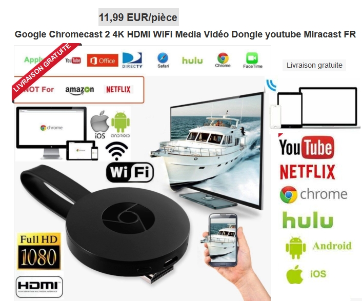 Il est préférable d'utiliser un Chromecast V2 plutôt qu'un Chromecast V3 et suivants. Avec un Chromecast V2 vous aller pouvoir dupliquer votre écran de smartphone ou PC sur votre TV alors qu'avec une version V3, certaines applications seront interdites et vous ne pourrez pas "caster" tous vos écrans et applications.