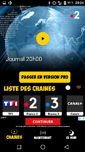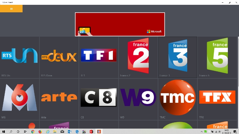 Inconvénients : Il faut avoir un réseau 3G, 4G, 5G ou WIFI de bonne qualité, ce qui n'est pas le cas partout en France. Certains opérateurs n'autorisent pas la Web TV hors de France, ou certaines applications ne sont plus actives hors de France. Il faut parfois s'acquitter d'un abonnement (Molotov TV par exemple ), ou dans certains cas les applications ne fonctionnent plus hors frontières. (Web TV Orange par exemple). L'application TNT Direct Windows 10 permet de recevoir les principales chaînes de TV hors de France. Actuellement l'application Web TV orange ne fonctionne que sur un ordinateur ou un slartphone et plus sur les Box Android TV. Avec un Chromecast V2 pour pouvez cependant caster la Web TV orange sur votre TV.