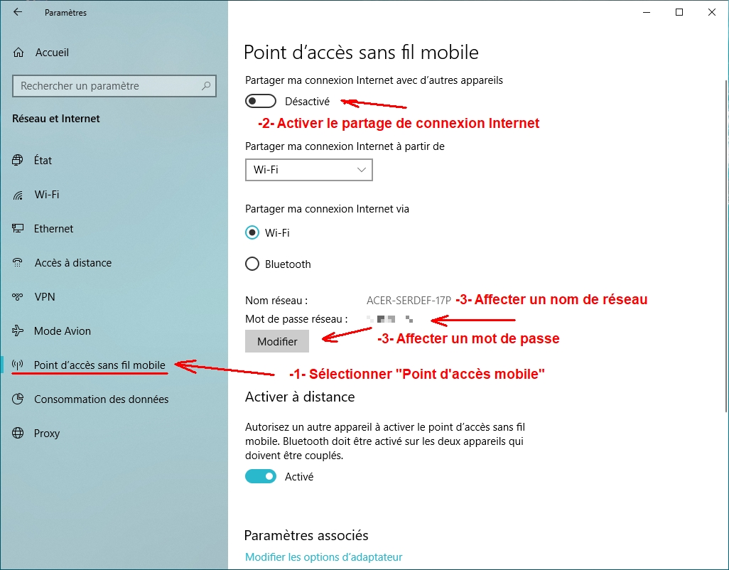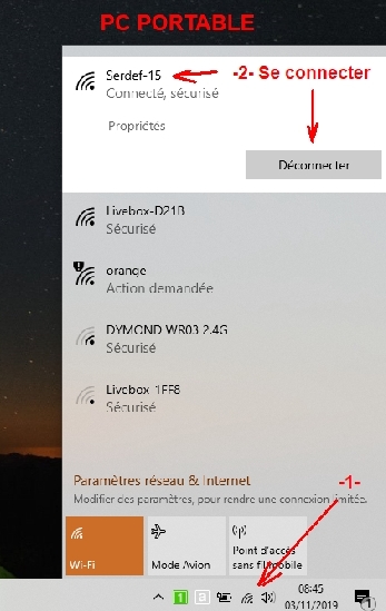 Sur votre PC portable (Windows 10) Paramétrage du partage |