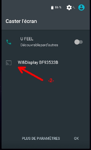 ![]() -2- Sélectionner le Chromecast Eventuellement cliquer sur "PLUS DE PARAMETRES" |