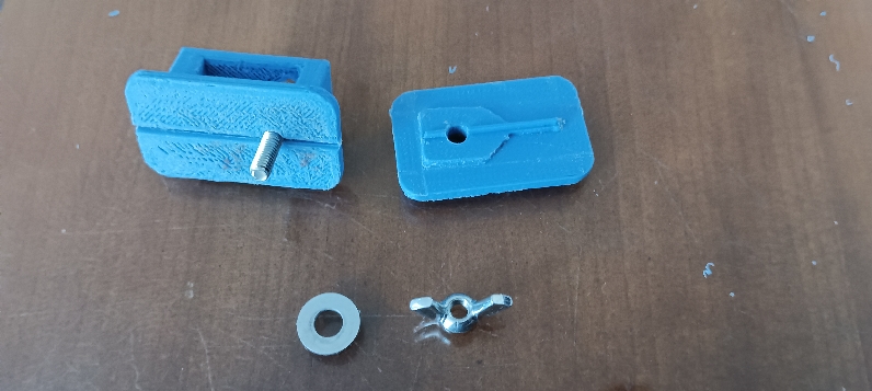 Pour faciliter le démontage de ce support j'ai bloqué le système à l'aide d'une vis à tête hexagonale M4 et d'un écrou à oreilles.