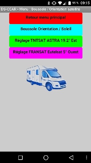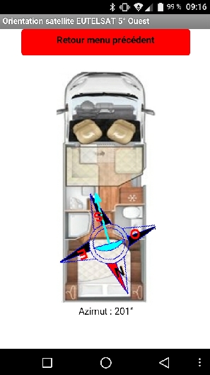 L'application gratuite DS-CCAR pour Android dont je suis l'auteur .Entre autres cette application possède des menus pour vous donner l'orientation de la parabole en fonction de l'orientation de votre campig-car.