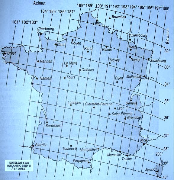 L'angle d'azimut donne l'orientation de votre parabole vers le