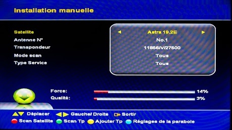 Recherche des chaînes du groupe TF1 sur le transpondeur GlobeCast