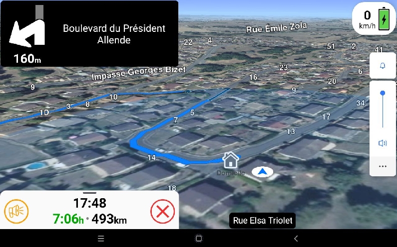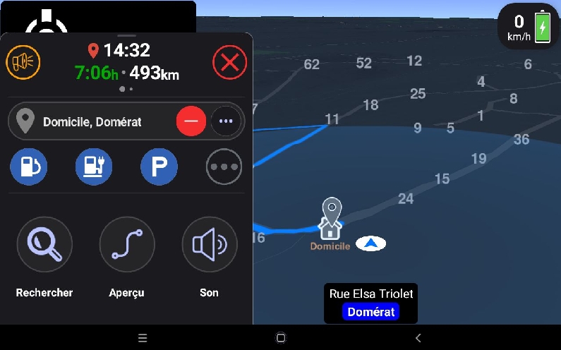 Nota : Les vitesses limites de Magic Earth sont souvent erronées ou absentes dans les agglomérations. Tomtom Amigo en arrière pla règle ce problème.