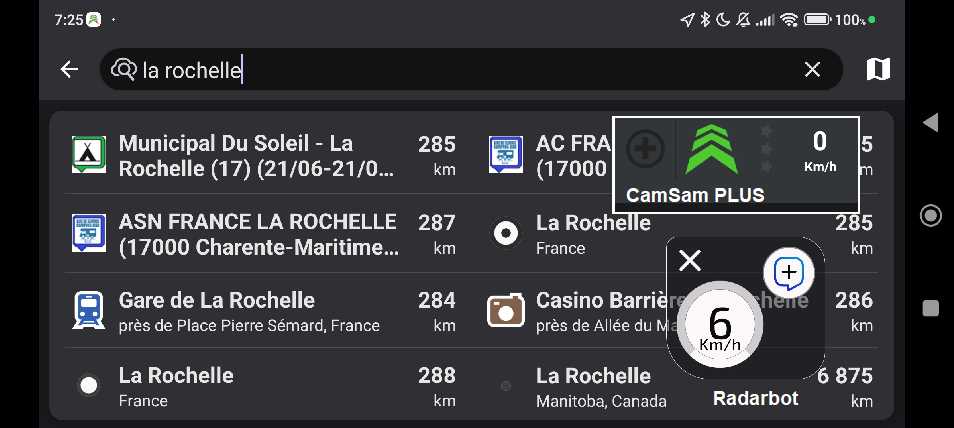 circulation j'utilise CamSam PLUS et Radarbot en arrière plan (Mode Widjet) à la